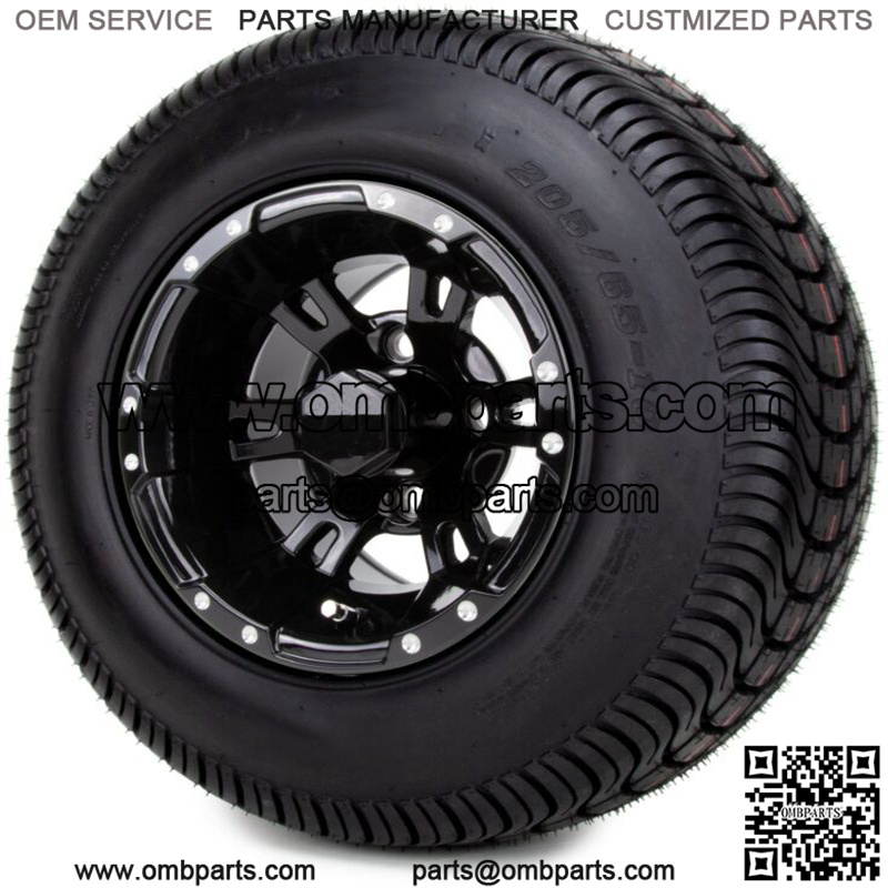 10" Ambush Glossy Black Golf Cart Wheels and Tires (205-65-10) - Set of 4