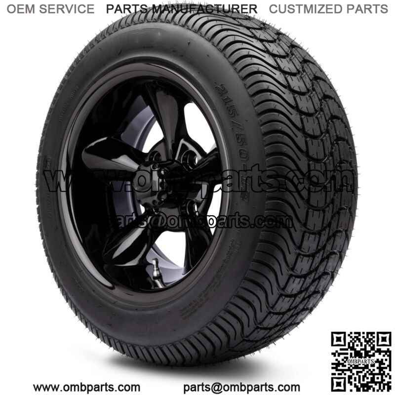 12" Godfather Glossy Black Golf Cart Wheels and Tires (215-50-12) Set of 4