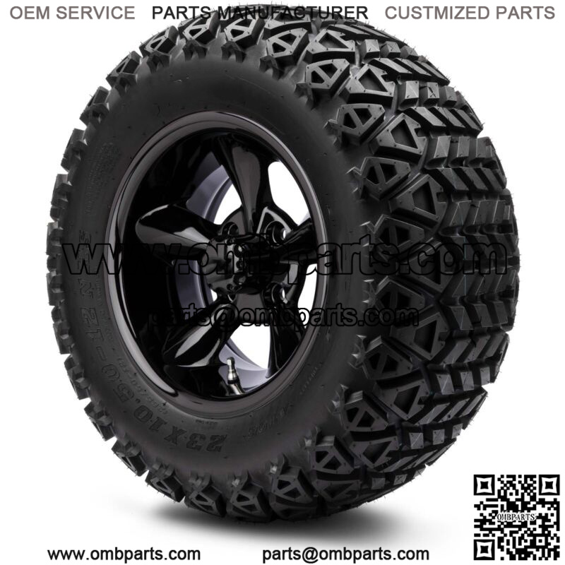 12″ Godfather Glossy Black Golf Cart Wheels & Tires (23×10.50-12) Set of 4