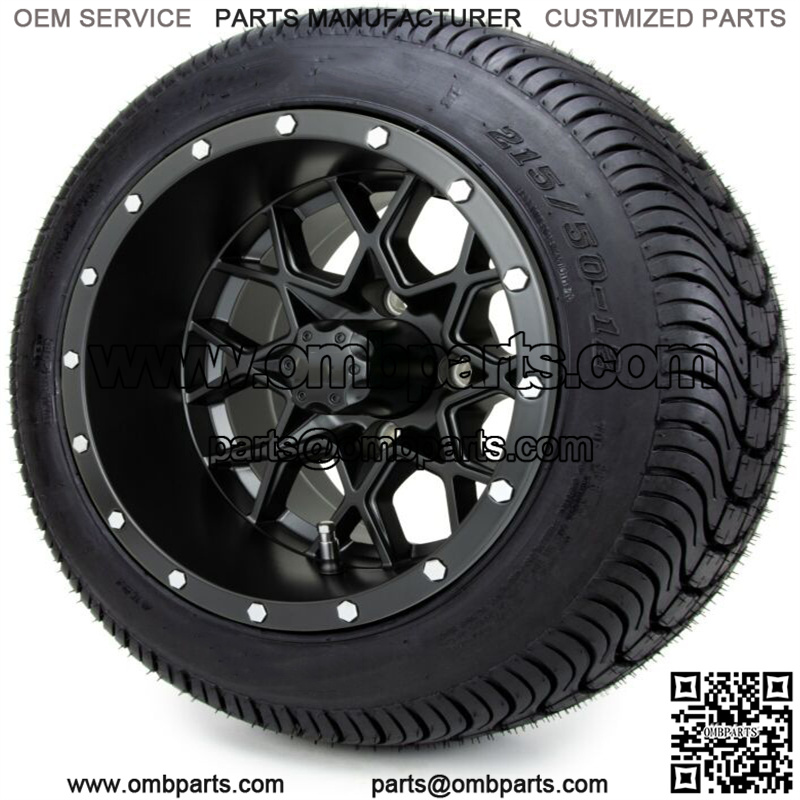 12" Matte Black Golf Cart Wheels and Tires (215-50-12) - Set of 4