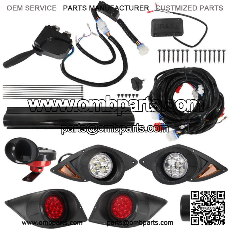 – Package Included: Golf Cart LED Light Kit And Golf Cart Universal Deluxe Light Upgrade Kit. 2x LED Head Lights, 2x LED Tail Lights, Turn Signals And Switch, Horn, Brake Lights, Harness Hardware .