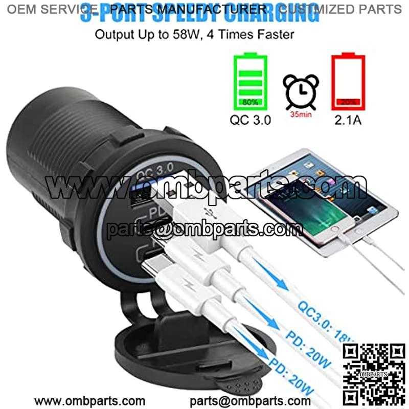 UPGRADED DESIGN: 3 ports can fast-charge simultaneously without affecting each other. For the 12V input, reach 58W; For 24V Input, the total power can reach 78W.