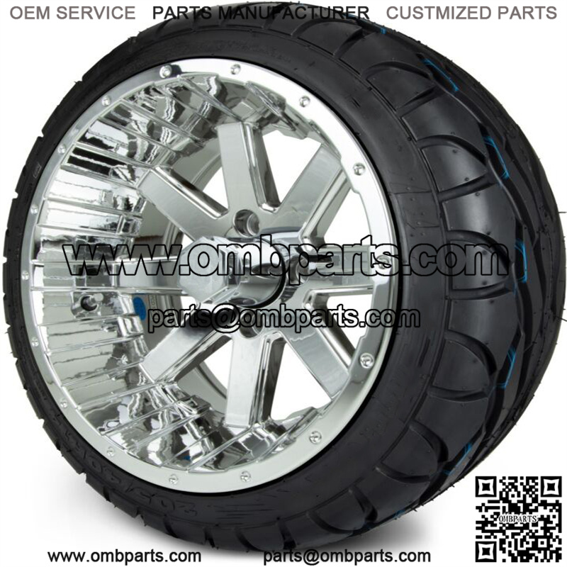 14″ Assault Chrome Golf Cart Wheels and Radial Tires (205/40-14)