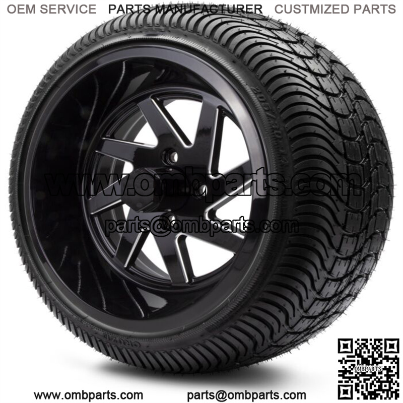 14″ Fury Black Ball Mill Golf Cart Wheels and Tires (205-30-14) Set of 4
