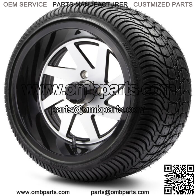 14″ Fury Glossy Machined Golf Cart Wheels and Tires (205-30-14) Set of 4