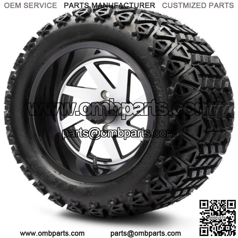 14" Fury Machined Black Golf Cart Wheels and Tires 23x10.00-14 Set of 4
