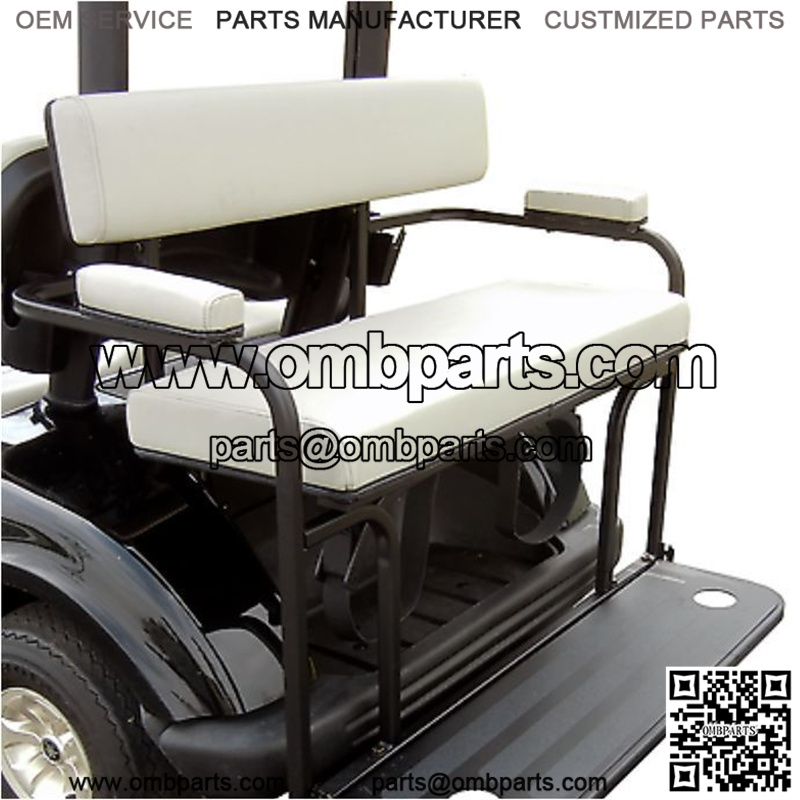 ** ***MUST PROVIDE A COMMERCIAL SHIPPING ADDRESS*** This seat kit can be shipped residential, but there will be a $75 additional fee for shipping, and must be paid before shipment:** . 2 in 1 Golf Cart Rear Seat Combo in White . Fits EZGO TXT Golf Carts . Seat Color: White . Change from seat to golf bag holder in seconds . Color matched cushion . Powder coated steel frame . Arm rest cushions . Checker plated foot board . Upgrade the look of your golf cart with this enhanced seat kit . Take your golf cart on the course with this seat kit. Conveniently transfers from seat to golf bag holder by simply lifting seat up and locking in place . Under seat storage compartment appropriately fits golf bags and serves as the bag rest while they are secured in place with Velcro straps . Not recommended for carts with 80. roof. Long roofs make it hard to take clubs out of golf bag . Installation instructions and all necessary mounting hardware included .