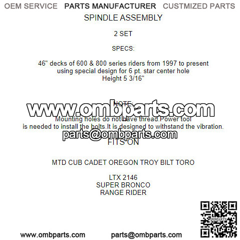 2 Spindle Assemblies for MTD Cub Cadet Troy Bilt Toro Oregon 46" Decks Mower