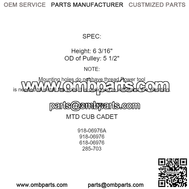 Engine Pulley for MTD 609G 609H LT-1742 LT-1842 LT-2046 Troy-Bilt