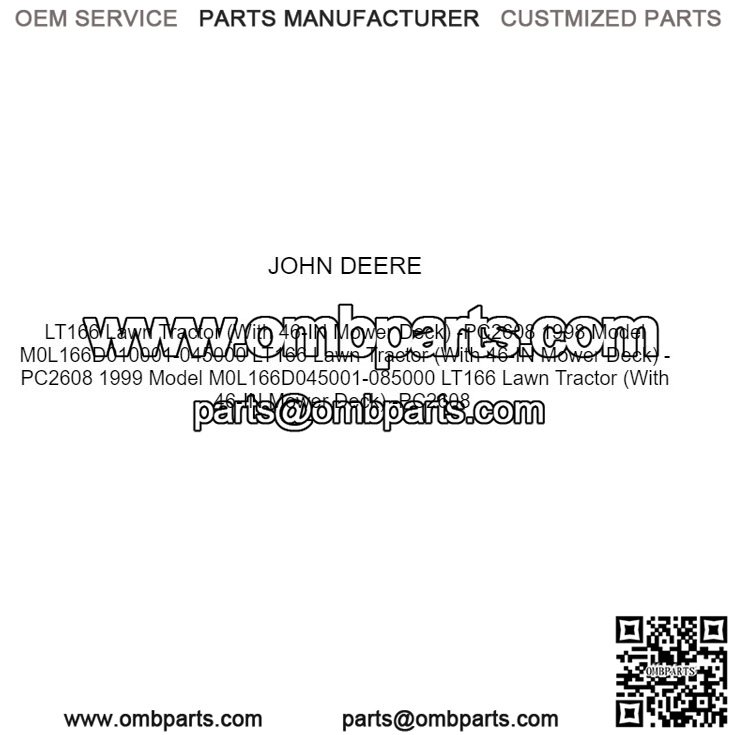 LT166 Lawn Tractor (With 46-IN Mower Deck) -PC2608 1998 Model M0L166D010001-045000 LT166 Lawn Tractor (With 46-IN Mower Deck) -PC2608 1999 Model M0L166D045001-085000 LT166 Lawn Tractor (With 46-IN Mower Deck) -PC2608