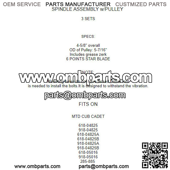 3 Spindle Assembly For MTD Cub Cadet 618-05016 918-05016 285-885