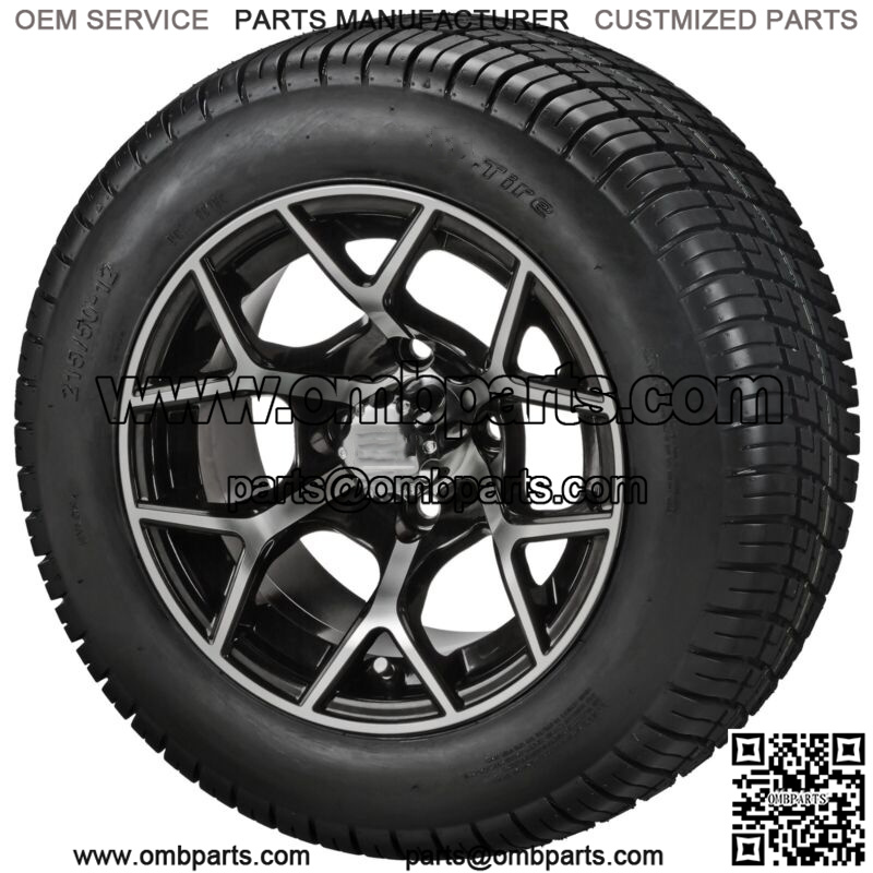 4 Golf Cart 215/50-12 Tires on 12x7 Black/Machined Ninja Wheels