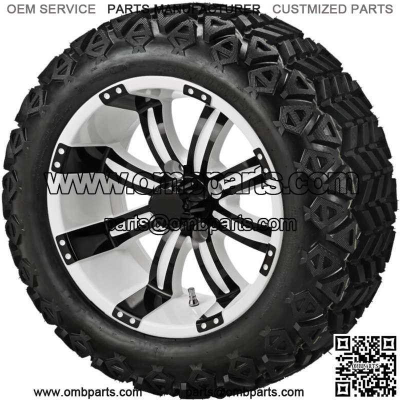 4 Golf Cart 23×10-14 All Terrain Tires on 14×7 White/Black Casino Wheels