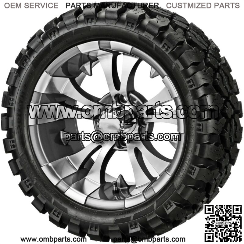 4 Golf Cart 23×10-14 Sierra Rover Radial Tires on 14×7 Gunmetal Vampire Wheels