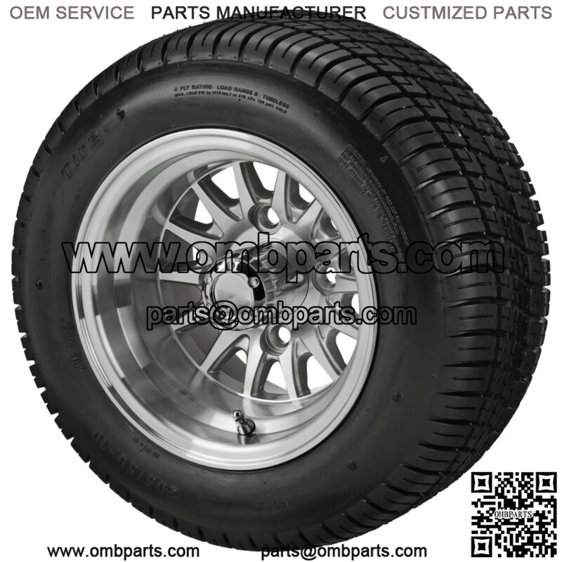 (4)Golf Cart 205/50-10 Tire on 10×7 Machined/Silver 14-Spoke Wheel Free Freight