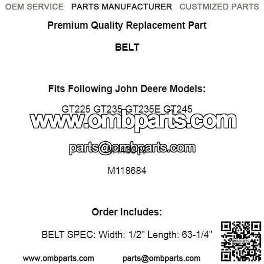 63-1/4 X 1/2 Belt for John Deere GT225 GT235 GT235E GT245 / M143019 M118684
