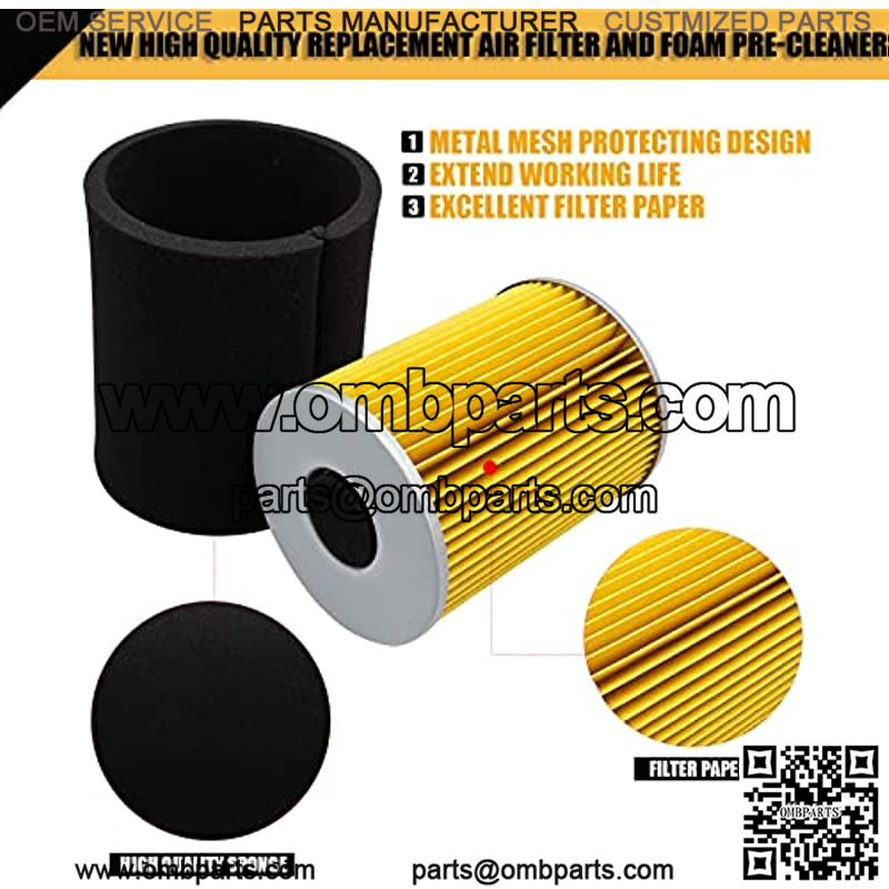 ??New high quality replacement air filter and foam pre-cleaner, durable filter paper design, inter metal mesh design, protection engine, extend working life, improves air flow and prevents dirt and dust.This OEM replacement part has been developed to meet or even exceed the manufacturer’s original equipment specifications.