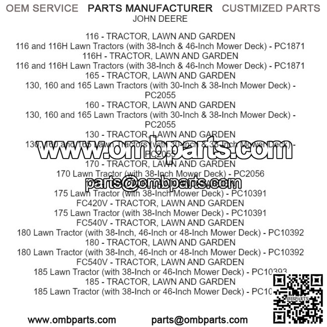 130, 160 and 165 Lawn Tractors (with 30-Inch & 38-Inch Mower Deck) – PC2055