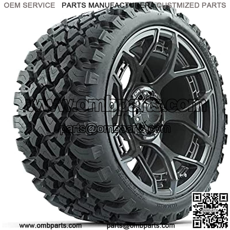 Evolution Gunmetal 15″ Lifted Golf Cart Wheels Mounted on 23″ Steel Belted Radial All-Terrain Tires (23×10-15) | Set of 4
