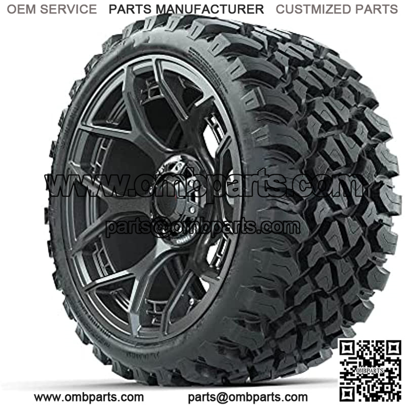 Evolution Gunmetal 15" Lifted Golf Cart Wheels Mounted on 23" Steel Belted Radial All-Terrain Tires (23x10-15) | Set of 4