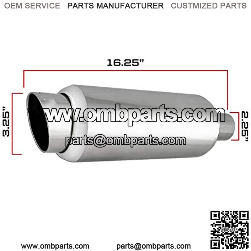 Dimensions: 2.25″ inlet, 3.25″ outlet, 16.25″ long