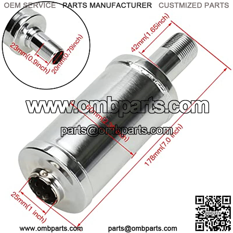 Product Name: 3/4???? universal muffler Material: Metal Color: Silver Size Overall length: 178mm(7.0 inch) Inner diameter of pipe: 20mm(3/4 inch) Outside diameter of pipe: 25mm(1 inch) Thread length: 23mm(0.9 inch)