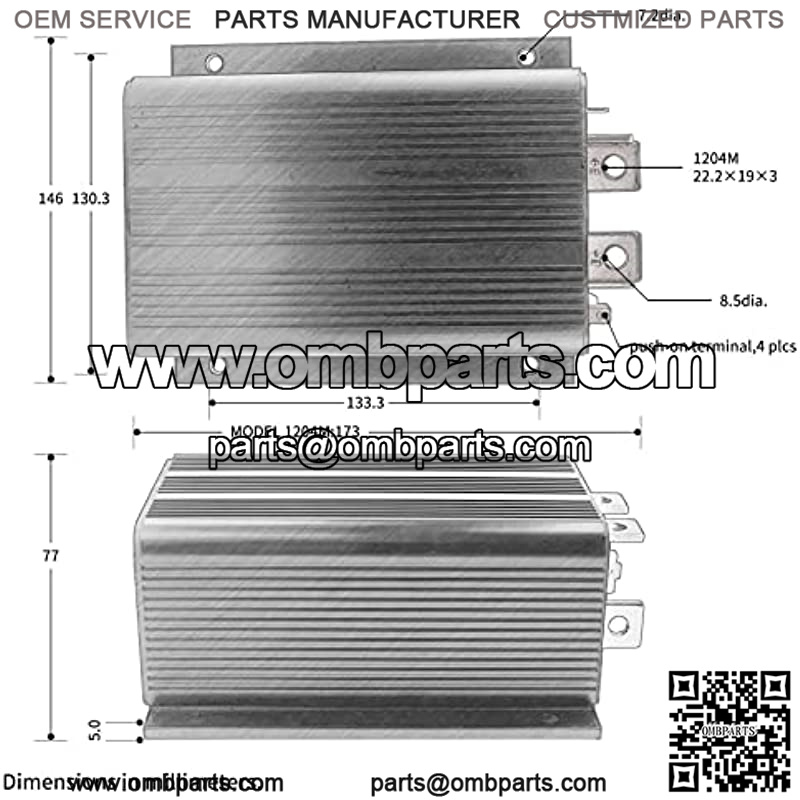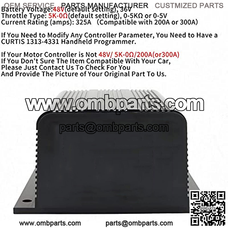 Key Features: For CURTIS Model 1204M-5305 Norminal Battery Voltage (Volts): 48V (default setting) or 36V2 Minute Current Rating (amps): 3255 Second Boost Current Rating (amps): 3581 Hour Current Rating (amps): 140Plug Braking (A2 Busbar): YesPWM operating frequency: 15.6 kHzElectrical isolation to heatsink (min.): 500 VACKSI input current (no contactors engaged):70 mA without programmer 130 mA with programmerTen throttle types can be used with these controllers:Type 0: 2-wire potentiometer, 0?C5k?? Type 1: 2-wire potentiometer, 5k???C0 Type 2: single-ended 0?C5V input Type 3: 2-wire potentiometer, 4.6k???C0 Type 4: 2-wire potentiometer, 5.5k???C0 Type 5: 2-wire potentiometer, 1k???C0 Type 6: ITS input Type 7: single-ended 6.3?C10.6 V input Type 8: single-ended 6?C12 V input Type 9: single-ended 3-wire potentiometer, 0?C5k??