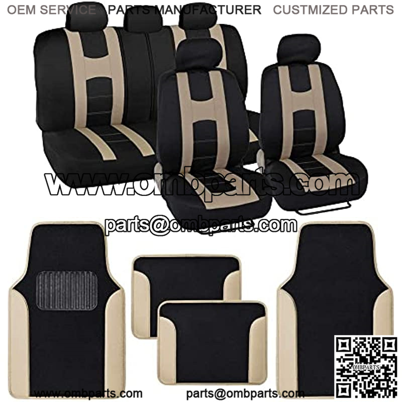 Rome Sport Beige Car Seat Covers Full Set Combo with Floor Mats ?C Front and Rear Car Seat Cover and Floor Mat Set, Interior Protectors with Two-Tone Accents, Fit for Auto Truck Van SUV.
