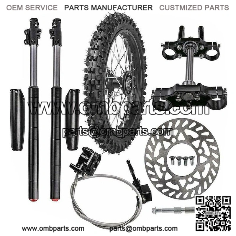 1x Wheel Rim Tire + 1 x Inner tube + 1 x Brake disc + 1 x Master cylinder Brake Caliper + 1 x Rim axle + 2 x Fork assembly +1 x Triple clamp handlebar riser set