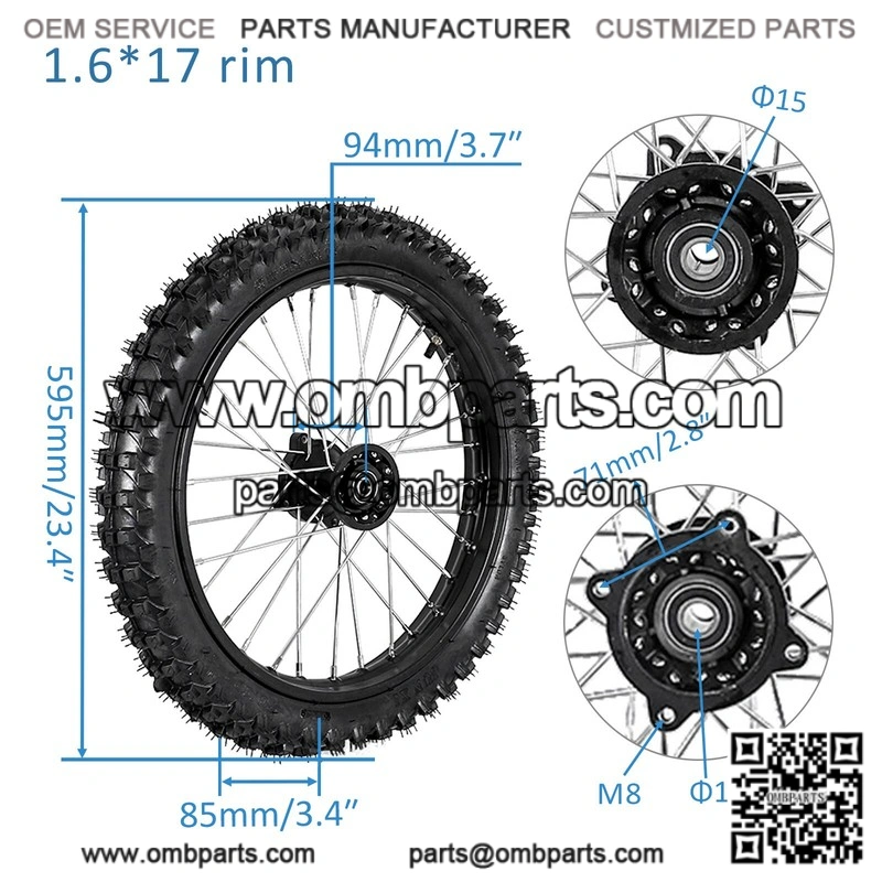 Wheel Size: 70/100-17 17 inch rim+tube+tyre.