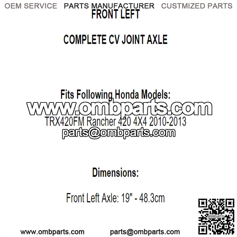 Front Left CV Joint Axle for Honda TRX420FM Rancher 420 4X4 2010-2013