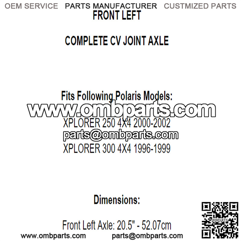 Front Left CV Joint Axle for Polaris Xplorer 250 2000-2002 / 300 4X4 1996-1999