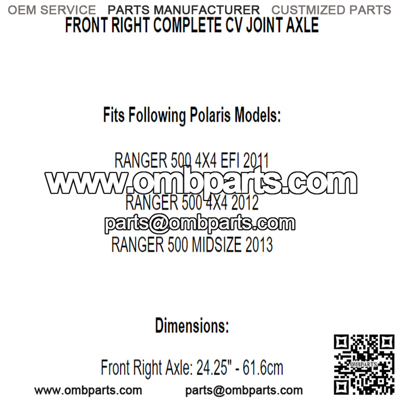 Front Right Complete CV Joint Axle for Polaris Ranger 500 4X4 2011-2013