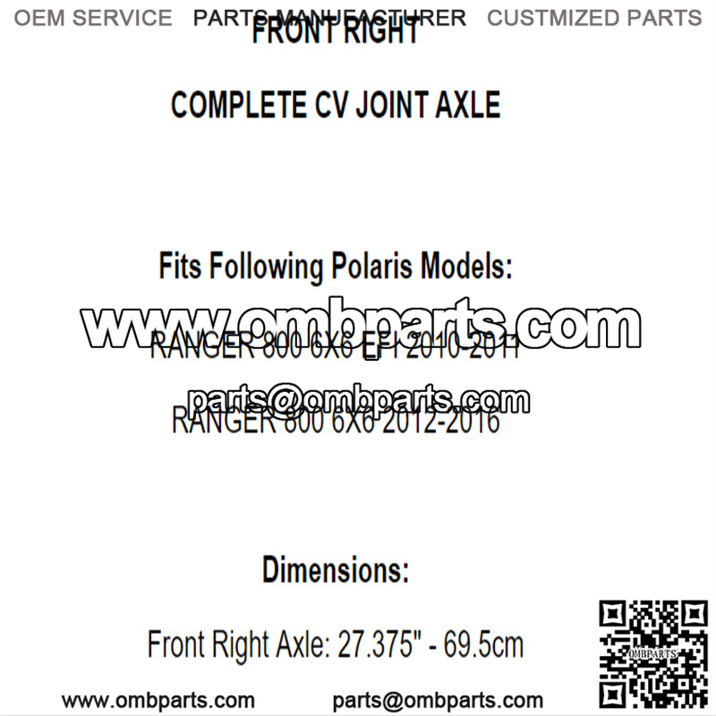 Front Right Complete CV Joint Axle for Polaris Ranger 800 6X6 2010-2016