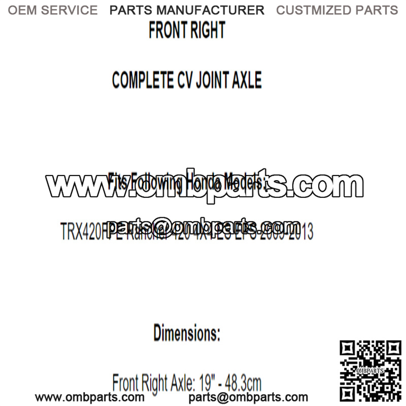 Front Right CV Joint Axle for Honda TRX420FPE Rancher 420 4X4 Es Eps 2009-2013