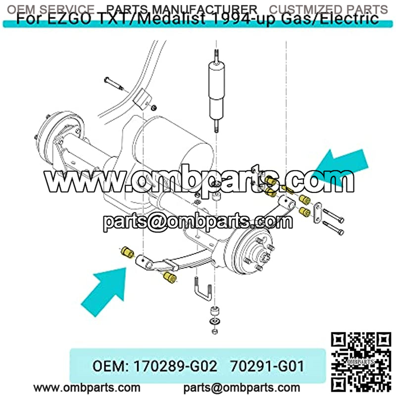 Golf Cart Bushing and Sleeve Kits (OEM #1015583, 1012303) for Club Car DS (1981-Up) and E-Z GO (1994-up) and EZGO TXT/Medalist 1994-up,Front or Rear Leaf Spring Bushing with Sleeve Kits