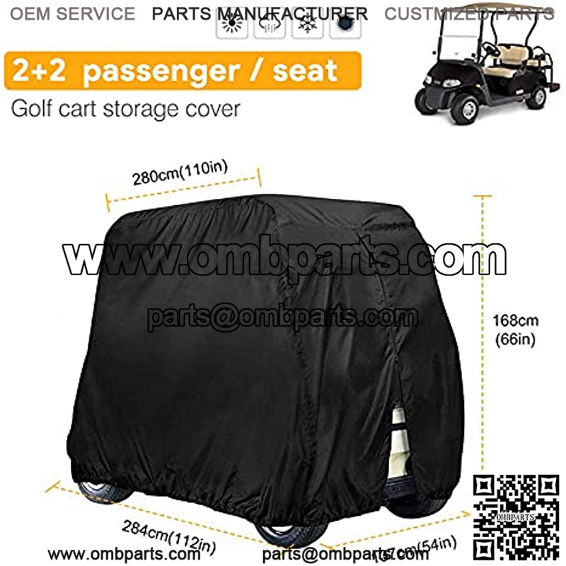Golf Cart Cover 4 Passenger Heavy Duty, 420D Waterproof Golf Cart Covers Extended Roof for EZ GO Club Car Yamaha Golf Carts, Outdoor Sunproof Dustproof 4 Seat Club Car Cover (Up to 112 Inch)