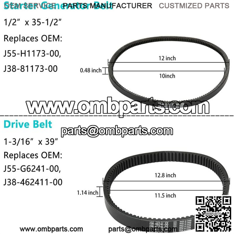 – Yamaha Starter generator belt size:1/2″ W x 35-1/2″ OD, Replace OEM # J55-H1173-00, J38-81173-00;