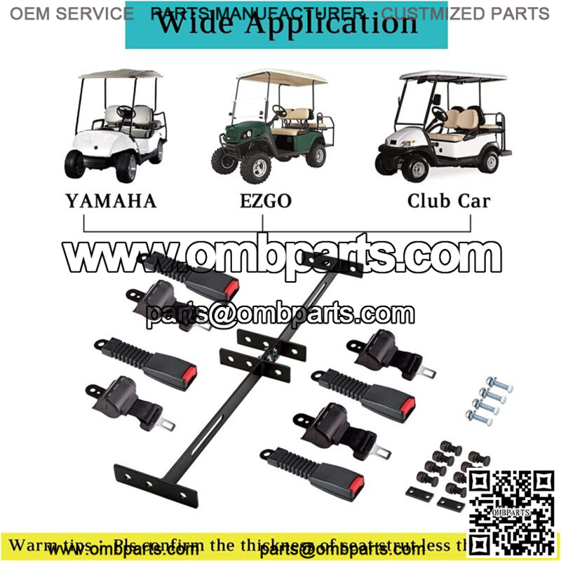 Package Includes: 1 piece 4 passenger golf cart seat belt brackets, 4 universal retractable golf cart seat belts kits and all necessary installation hardware. Belts with the DOT certified to meet federal safety standards.