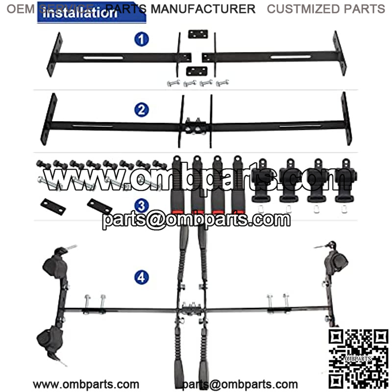 4. Include: 1pcs universal golf cart seat belts bracket , 4pcs retractable golf cart seat belts and all needed hardware.
