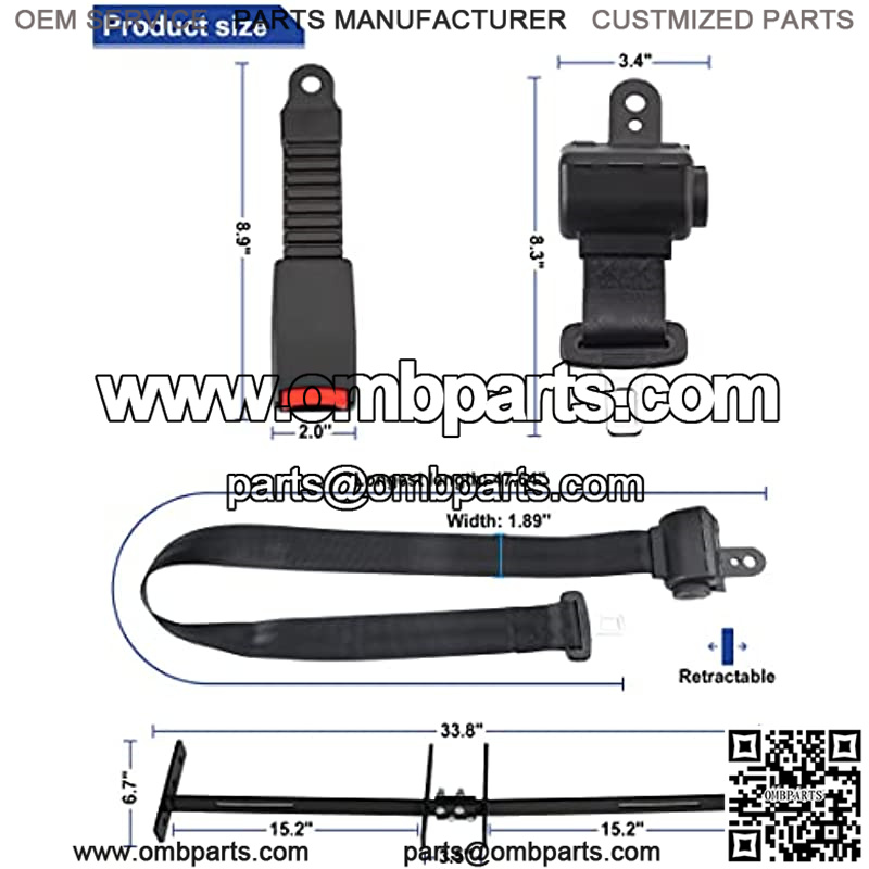 2. Size: Seat bracket size: 33.8″ x 6.7″. Length of belt alone is 42″