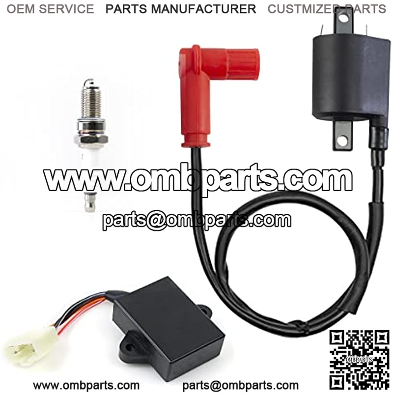 Package Contents: Ignitor CDI Box x 1, Ignition Coil x 1, Spark Plug x 1.