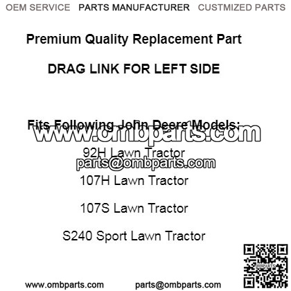Left Side Drag Link for John Deere 92H 107H 107S S240 Lawn Tractor / GY21250