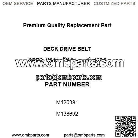 M120381 M138692 Deck Belt For John Deere F910 F912 F915 425 445 455 54" Deck