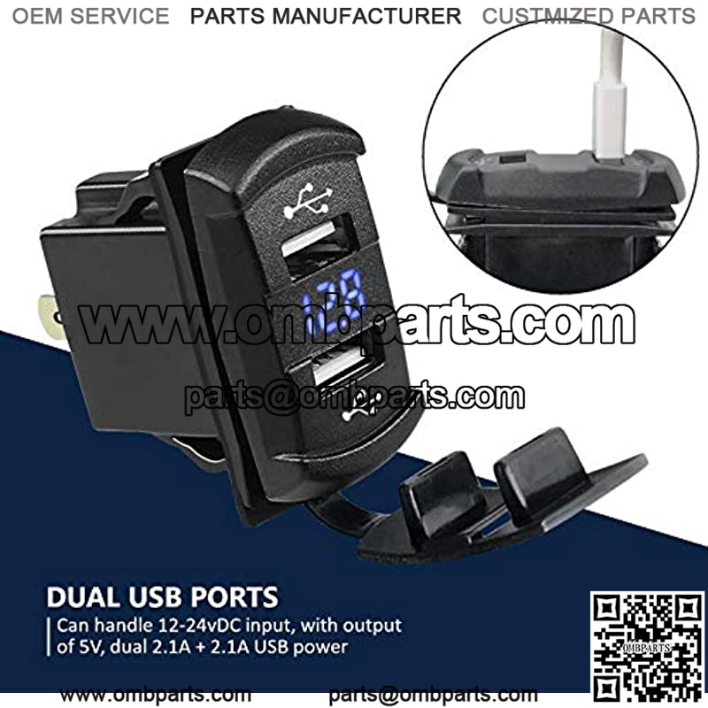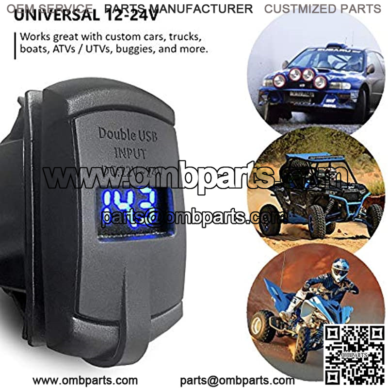 MGI SpeedWare Dual USB Charger with Voltmeter, 12-24v with LED Digital Display (Blue)
