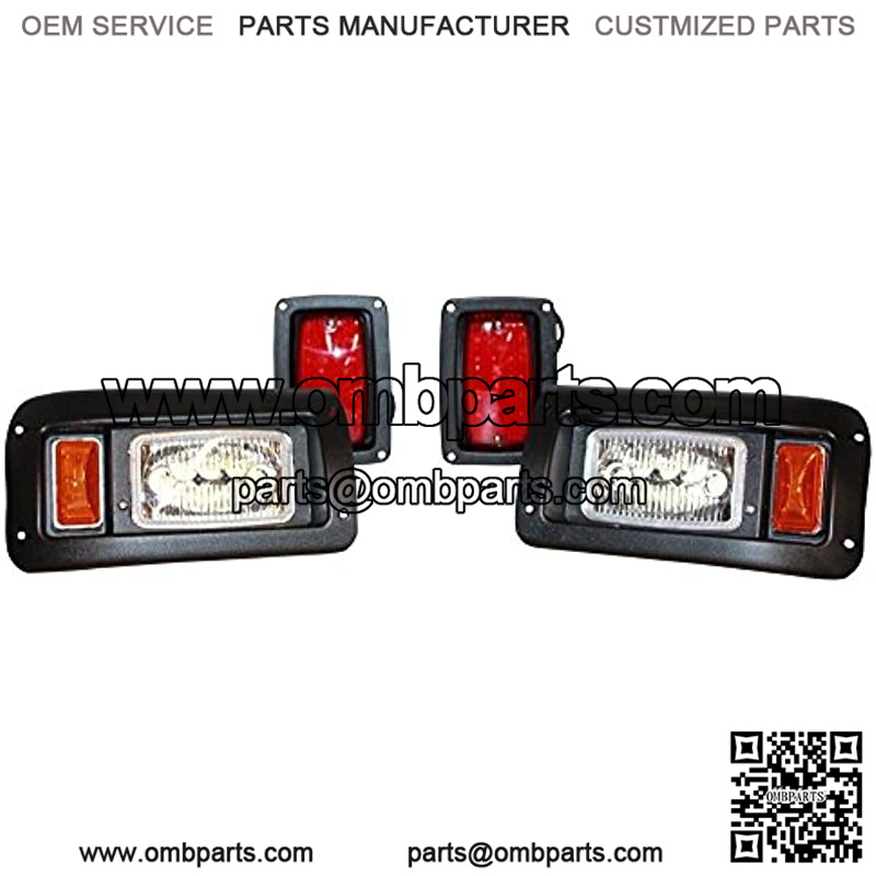 Kit Includes: – Adjustable FULL LED Headlight Assemblies (Left and Right) – LED Amber Side Marker Lights – LED Tail Lights (Left and Right) – Push/Pull Switch – Full Plug N Play Easy to Install Wiring Harness – Cutting Template Included, Just Line the Template Up on Your Golf Cart and You Will Know Exactly Where to Cut and Install Each Light – Full Installation Instructions **All of our kits are designed to withstand the test of time. We have been using and selling this same kit for many years. Everything is included to make
