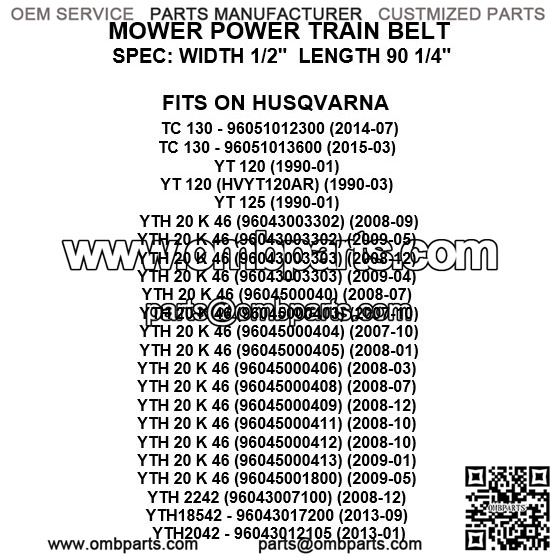Order Includes:1x Mower Power Train Belt