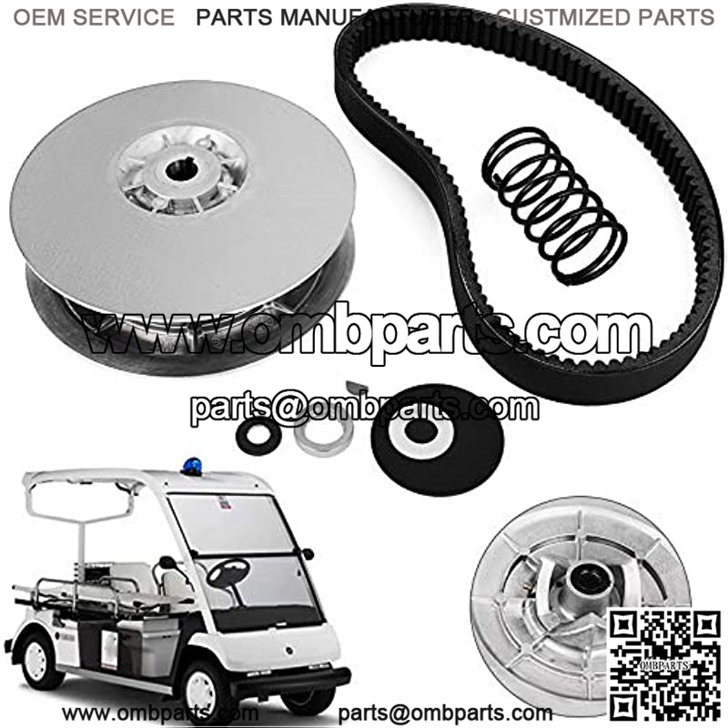 Full-Set Equpment: The golf cart clutch including the fixed sheave, sliding sheave, spring, spring seat, ramp shoes, woodruff key, nut, spacer, washers and cotter pin, and a new drive belt.