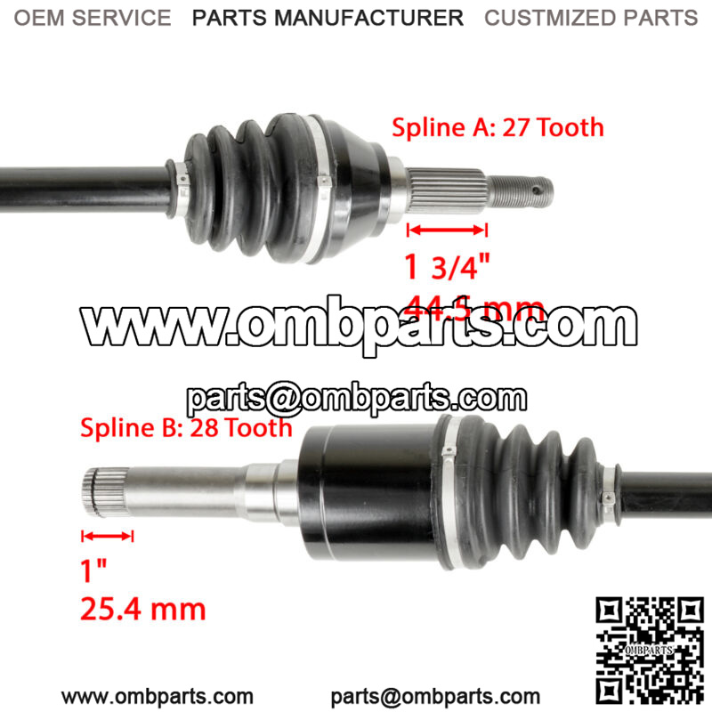 Rear Left and Right Axle: 774 mm / 30 1/2″Spline A:27 ToothSpline B:28 Tooth