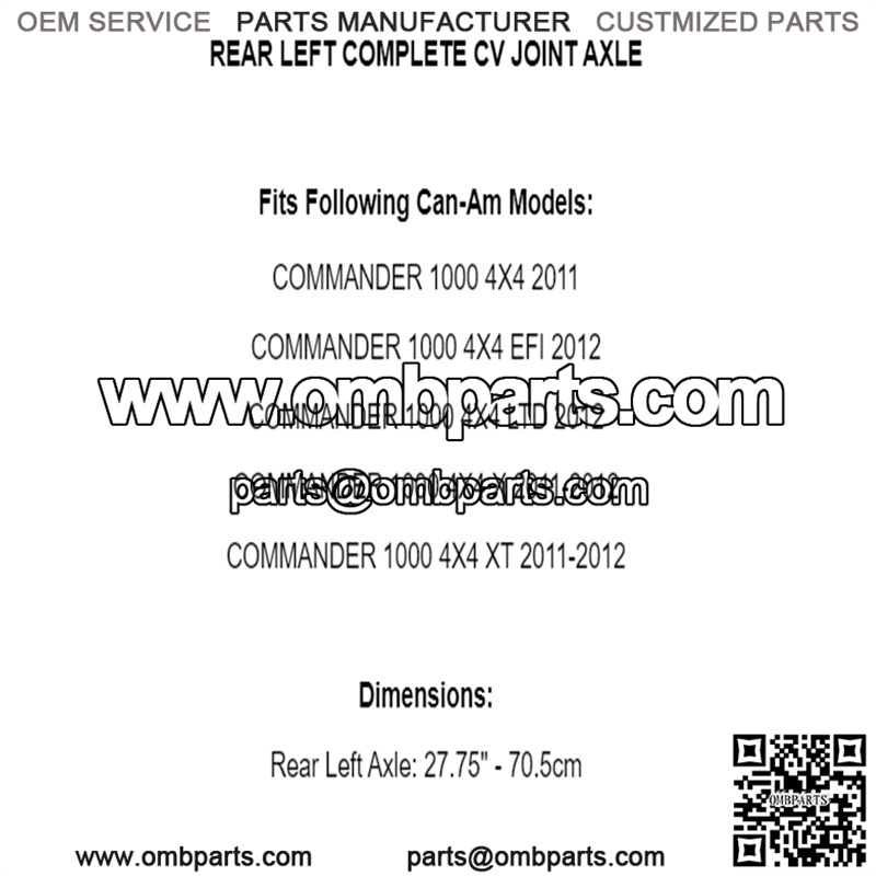 Rear Left Complete CV Joint Axle for Can-Am Commander 1000 4X4 2011 2012